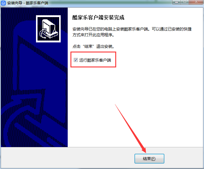 5、酷家樂室內(nèi)裝修軟件安裝完成,如果大家需要直接運(yùn)行改程序,則勾選下圖中的復(fù)選框,之后點擊“結(jié)束”完成安裝向?qū)?br />