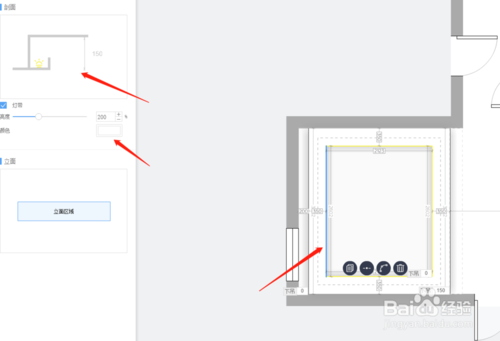 然后點擊中間的線條,出現(xiàn)剖面燈帶命令,在這里可以更改燈帶的亮度和顏色,我們點擊剖面造型圖案,將出現(xiàn)編輯命令