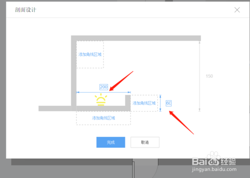 在剖面設(shè)計里,我們可以更改下燈帶角線的寬度和高度,大家根據(jù)效果自由更改下