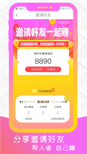 1、省:大額優(yōu)惠券,每日更新大額優(yōu)惠券,領(lǐng)券購(gòu)物更省錢!全部免費(fèi)領(lǐng)取,簡(jiǎn)單方便直接抵現(xiàn)金。2、賺:不僅省還能賺,分享能賺錢,邀請(qǐng)好友也能賺錢!