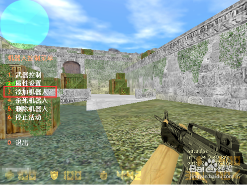 在彈出的機(jī)器人添加菜單中,按數(shù)字1添加一個(gè)恐怖分子,按數(shù)字2添加一個(gè)反恐精英,按數(shù)字3為隨機(jī)添加,按數(shù)4添加滿(mǎn)服務(wù)器,如需要多個(gè)重復(fù)操作