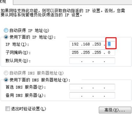 在“常規(guī)”選項(xiàng)卡下點(diǎn)“屬性”,在“網(wǎng)絡(luò)”選項(xiàng)卡下選中“Internet協(xié)議”,點(diǎn)屬性。只要改最后一個(gè)數(shù)字就行了,填什么都行,不重復(fù)就行。dns可以不用填。