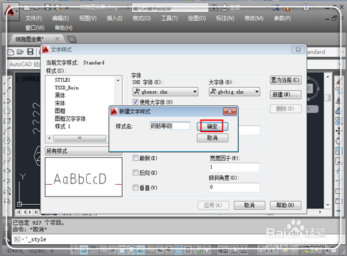 要求指定“樣式名”,輸入一個樣式名字,比如“鋼筋等級”,點(diǎn)擊“確定”。