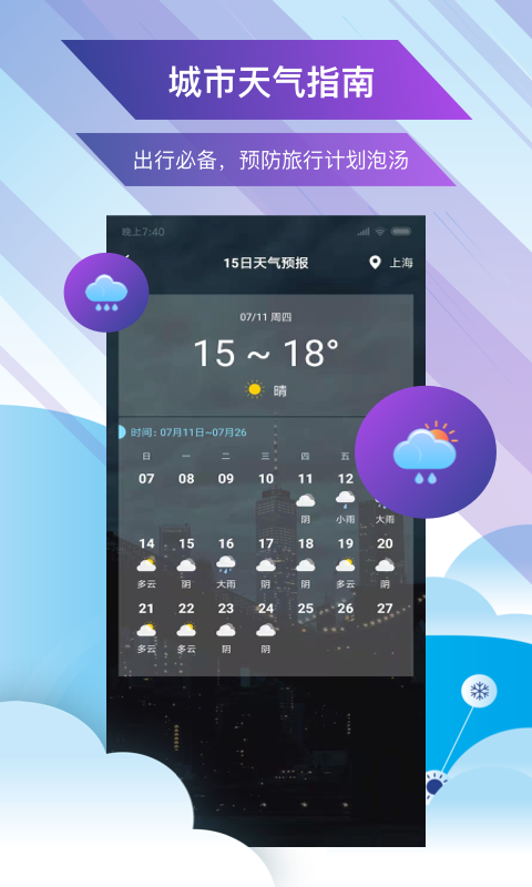 7日天氣預(yù)報:折線圖與列表雙面展示,更清晰地了解一周天氣變化趨勢;