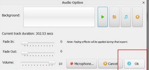 點(diǎn)擊音樂(lè)按鈕,選擇音樂(lè),在選擇音樂(lè)的過(guò)程中科院先試聽(tīng),滿意后按確定,確定選擇的音樂(lè)之后,在點(diǎn)擊右下角的”ok“.