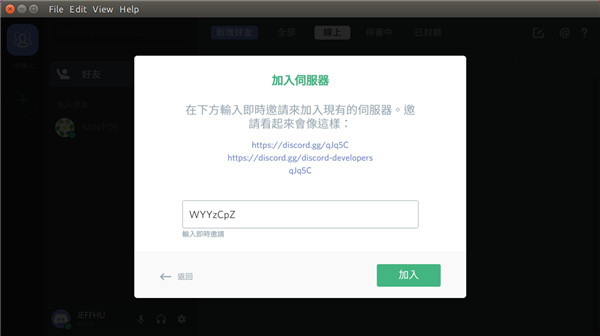 以加入MINTOS群為例,點(diǎn)擊“加入伺服器”后,輸入群的鏈接,即可加入。https://discord.gg/WYYzCpZ
