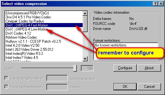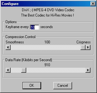 video->compression...->選擇輸出文件的格式和壓縮代碼,否則會弄個幾G的文件(不好的converter可能在這步上有問題)我一般用divx fast motion 或slow motion。有人建議xvid codec。