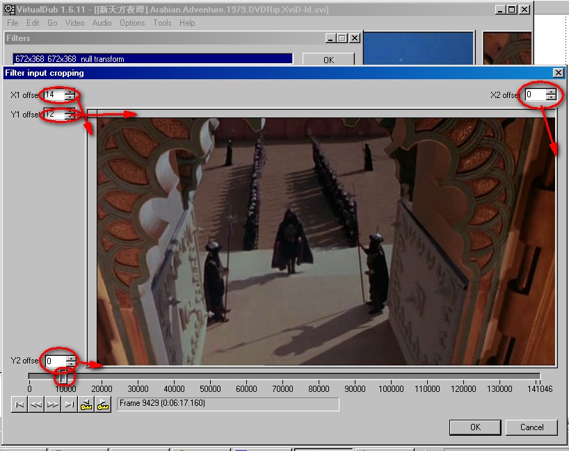 這時出現(xiàn)個御覽框,先拖動找到各合適的畫面,然后修改預覽框左邊和頂部的四個參數(shù),也就是上下左右縮進多少,弄好了點OK。