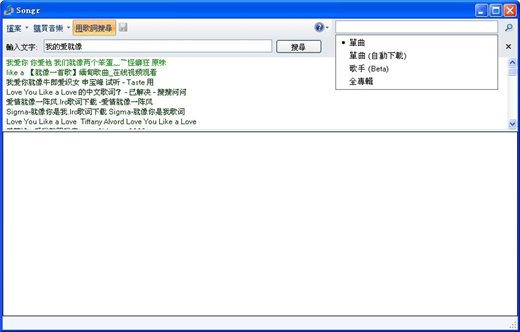 可以檢索歌詞,歌曲名,歌手名,專輯名來查找下載音樂文件