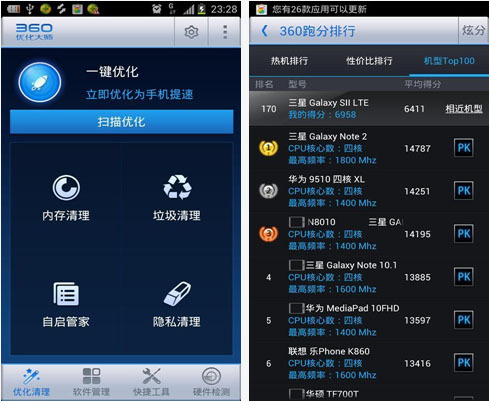 360優(yōu)化大師針對(duì)新手機(jī)推出的硬件檢測(cè)功能,可準(zhǔn)確鑒別手機(jī)型號(hào)和性能,杜絕受騙風(fēng)險(xiǎn)。而通過(guò)對(duì)新手機(jī)一鍵優(yōu)化,系統(tǒng)能將手機(jī)調(diào)試至最佳狀態(tài),使用更加順暢。此外,360優(yōu)化大師設(shè)有安裝包管理、軟件升級(jí)、軟件卸載模塊,精簡(jiǎn)了管理步驟,大大方便了軟件管理。