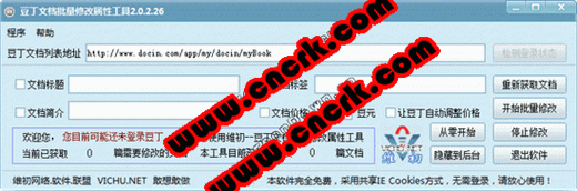 豆丁文檔批量修改屬性工具能夠支持豆丁文檔批量修改屬性的工具。 可以實現(xiàn)文檔標(biāo)題、簡介、標(biāo)簽、價格的修改