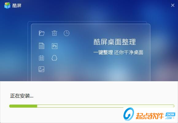 正在安裝酷屏,酷屏界面可以幫你一鍵整理電腦桌面,還你一個(gè)干凈有條理的電腦桌面;