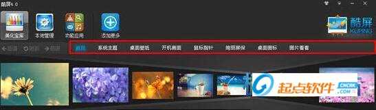 酷屏是款集成壁紙、主題資源于一體,自動(dòng)播放更換壁紙的桌面美化軟件,軟件提供大量的壁紙和主題,操作簡(jiǎn)單??崞敛粌H集成近海量的XP電腦主題、Win7主題、桌面壁紙、電腦登陸界面、鼠標(biāo)指針、桌面屏保、文件夾圖標(biāo)……等桌面美化資源??崞吝€提供:CMD查詢、計(jì)算機(jī)、視頻播放器、圖片播放器、瀏覽器、桌面清理、桌面事件等精美桌面應(yīng)用,酷屏使您的Windows桌面更加實(shí)用和多彩。