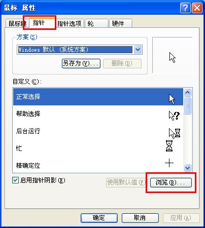 如果不想用第三方的美化工具,也是可以更改鼠標(biāo)指針的。首先,將下載的鼠標(biāo)指針資源放到“C:\WINDOWS\Cursors”目錄下,然后,進(jìn)入“控制面板”,選擇“鼠標(biāo)”選項(xiàng),然后切換到“指針”標(biāo)簽頁(yè),點(diǎn)擊下方的“瀏覽”按鈕,選擇剛剛復(fù)制的鼠標(biāo)指針資源文件,最后點(diǎn)擊確定就可以了。