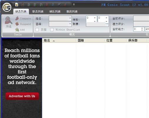 FM2012球探工具(FM Genie Scout 12)是最新的球探工具V1.00 beta 3,支持12.10正式版