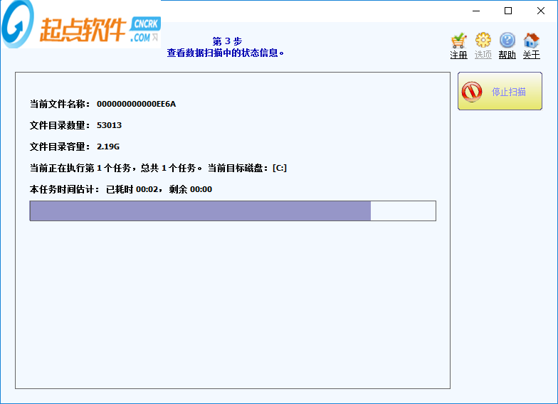4、正在掃描數(shù)據(jù),用戶等待掃描完成,您可以查看當(dāng)前的掃描狀態(tài)與信息。