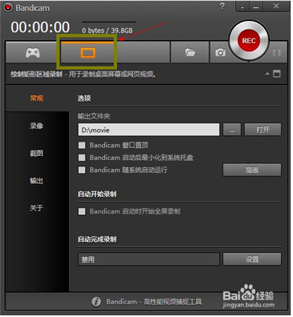 查看Bandicam工具欄按鈕,你將發(fā)現(xiàn)一個(gè)“口”字圖標(biāo)的按鈕。