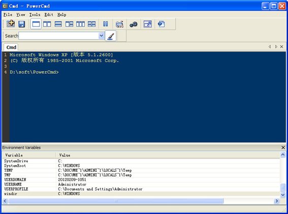 powercmd是一款增強(qiáng)版本cmd的工具,cmd是windows平臺(tái)下的dos命令行環(huán)境,這個(gè)程序?yàn)閏md提供了圖形化的工作界面??梢员绕胀╟md工具提供更多選項(xiàng).
