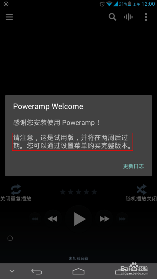 先安裝Poweramp,第一次打開發(fā)現(xiàn)Poweramp有試用期