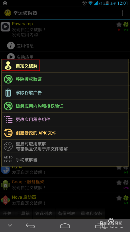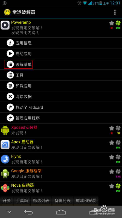 選擇Poweramp破解菜單