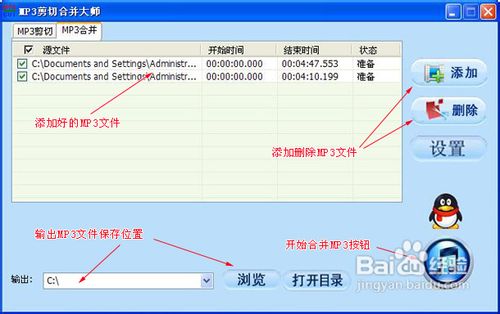 點(diǎn)擊“添加”按鈕,導(dǎo)入mp3文件