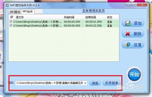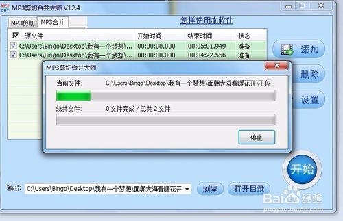 再次點(diǎn)擊“添加”按鈕,導(dǎo)入另一個mp3文件,圖例是兩首音樂,但可以以以此類推添加多首音樂