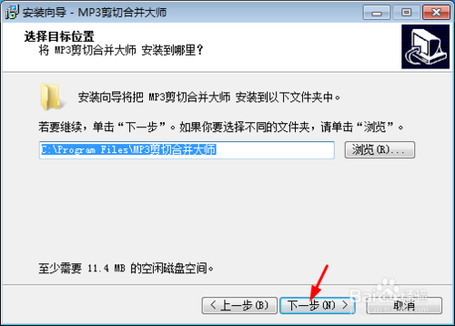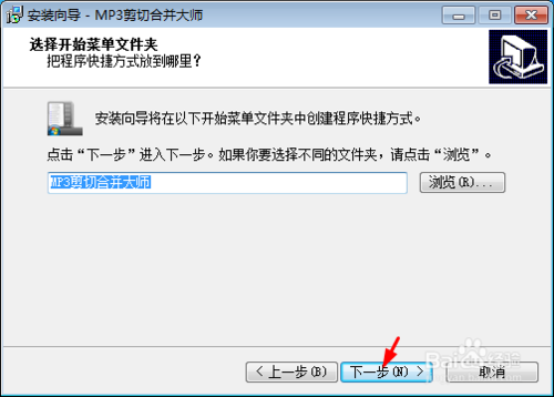 打開下載好的MP3剪切合并大師,進(jìn)入安裝界面,點(diǎn)擊下一步
