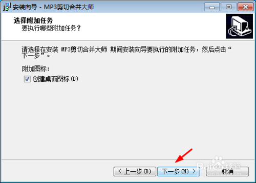 選擇附加任務(wù),即創(chuàng)建桌面圖標(biāo),點(diǎn)擊下一步