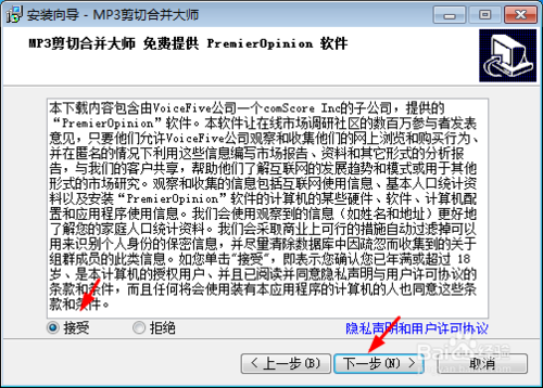 選擇接受用戶協(xié)議,點(diǎn)擊下一步