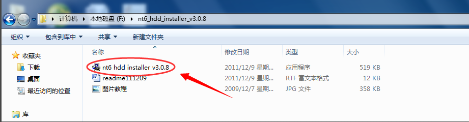 打開(kāi)下載好的nt6 hdd installer工具,然后再點(diǎn)擊那個(gè)執(zhí)行文件。