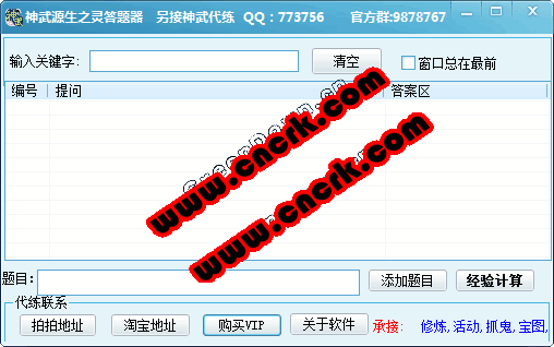 神武答題器是一款神武答題輔助工具。目前題庫包含3500多題考題,如發(fā)現(xiàn)新考題請及時提交給我們。輸入問題關鍵字自動跳出考題及答案,點擊考題可查看完整考題題目。