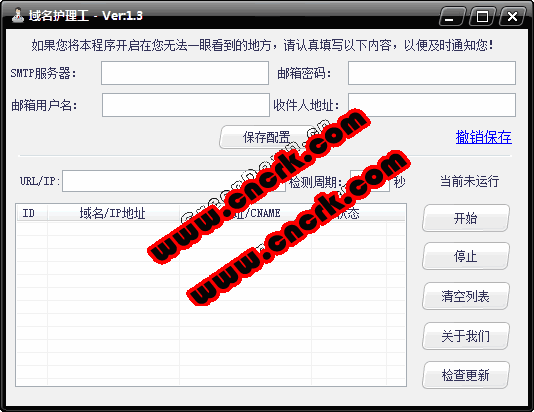 2.如果需要發(fā)送郵件提醒,請(qǐng)正確輸入軟件上方的郵箱配置項(xiàng),如果不輸入則不會(huì)發(fā)送郵件提醒。