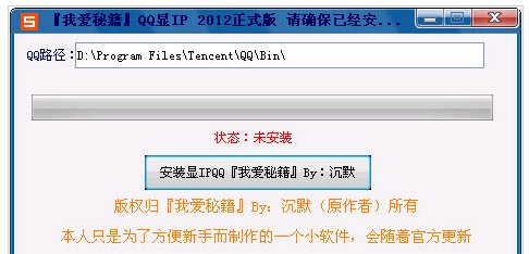 QQ2012顯IP插件傻瓜安裝包 集成了QQ2012顯IP的插件 找到QQ安裝目錄路徑后直接安裝即可