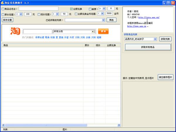 淘金幣兌換助手 v3.3綠色版 淘金幣兌換助手幫助我們了解兌換規(guī)則,淘寶金幣兌換規(guī)則又變了,現(xiàn)在全額兌換的金幣數(shù)量不是按現(xiàn)價(jià)*100的算法了,而且有些店還要是店鋪vip才能用金幣兌換(只有進(jìn)入購(gòu)買(mǎi)頁(yè)面才知道),所以有些搜索出來(lái)能全額兌換的商品,不一定就真的能全額兌換(因?yàn)楹芏鄷r(shí)候,我們不是該店的vip)
