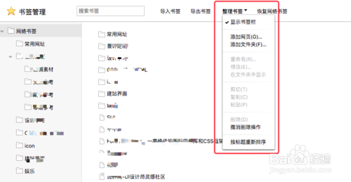 以上兩種方法都可以操作。打開【網(wǎng)絡(luò)書簽】后,就可以看到當前書簽管理界面,如圖所示,這是小編自己的書簽哦
