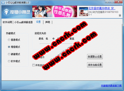 本軟件采用按鍵精靈編寫,仿人工瞄準(zhǔn),幾乎無法被識(shí)破,且沒有對(duì)游戲內(nèi)存進(jìn)行任何讀寫操作,因此不會(huì)被qq游戲程序判斷為非法而停止游戲。。