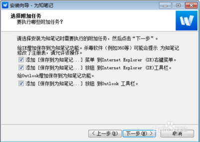6、選擇附加任務(wù),根據(jù)個人的需要選擇,選擇“下一步”
