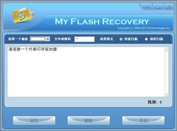 My Flash Recovery是一款閃存驅(qū)動(dòng)器和其他類型的USB設(shè)備(SM卡,安全數(shù)字,恢復(fù)工具等)FAT 16/32文件系統(tǒng)數(shù)據(jù)恢復(fù)工具,適合于所有主要的廠商制造的產(chǎn)品 - 可以查找, 預(yù)覽和恢復(fù)意外刪除的數(shù)據(jù),甚至是已經(jīng)格式化的閃存驅(qū)動(dòng)器。已刪除的文件, 文檔, 檔案, 圖像, 音樂和其它能被有效恢復(fù)和保存的信息都能被恢復(fù) ,無需任何特殊技能。My Flash Recovery使用兩種模式:快速掃描(不到1分鐘。)和深層掃描,目的是恢復(fù)格式化閃存驅(qū)動(dòng)器的數(shù)據(jù)。