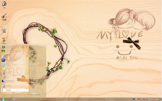 想念的他win7主題中的主色調(diào)是簡單樸素,樹木的紋路有寬有窄,組成了千奇百怪的形象,而筆繪給人一鐘很q、很可愛的感覺,尤其是那一筆一劃的my love和miss you,愛滿滿得要溢出來了