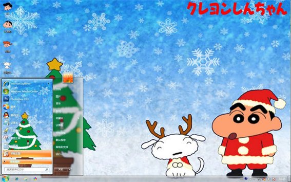蠟筆小新作為漫畫中最無恥的小孩代表,深受孩子們和童心未泯的大人們的喜歡,這款蠟筆小新win7桌面主題也是非??蓯鄣囊豢顆in7主題哦,蠟筆小新穿著一身圣誕裝,小白裝扮成小鹿的模樣,還有漫天的雪花,他們想著在過圣誕節(jié)嗎?這才四月份呢?看來小新果然是很有童真哪!