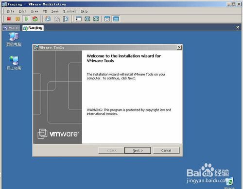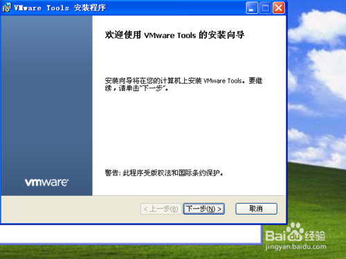 在虛擬機(jī)系統(tǒng)里面,點(diǎn)擊“Vmware Tools 安裝程序”窗口上的“下一步”
