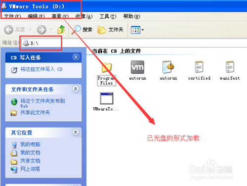 點(diǎn)擊之后,系統(tǒng)界面會彈出虛擬機(jī)的相關(guān)安裝文件,這些文件是以光盤的形式加載到系統(tǒng)中的,如下圖所示。