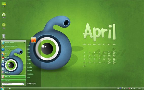 屬于春天的四月也是綠色的,但是這個時候的綠已不是嫩綠了,而是綠得春意盎然,這款win7主題就很好的體現(xiàn)了春意,一只大大的眼睛望著你,還有四月桌面日歷,提醒著你每天的日程,是不是很人性化呢?