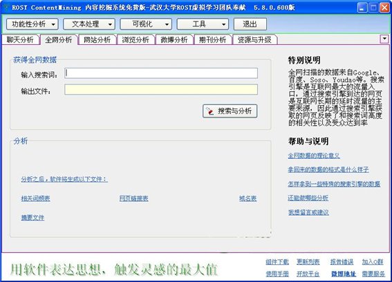目前將ROST反剽竊的全網(wǎng)檢索的部分整合到了ROST CM內(nèi)容挖掘系統(tǒng) 中的相似分析模塊。在教育網(wǎng)由于網(wǎng)絡(luò)環(huán)境問題,服務(wù)器連接有問題,建議在電信網(wǎng)中使用