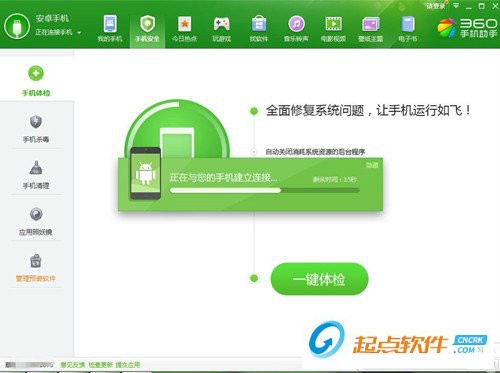 360手機助手提供海量的游戲、軟件、音樂、小說、視頻、圖片,通過它輕松下載、安裝、管理手機資源。所有提供信息資源,全部經(jīng)過360安全檢測中心的審核認證,綠色無毒,安全無憂。360手機助手幫助你用最省流量、最快捷、最方便、最安全的方式獲取網(wǎng)絡(luò)資源,為您的android手機注入鮮活色彩!