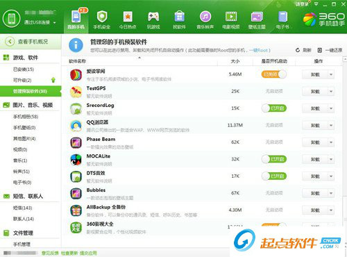 12、現(xiàn)在,你的手機已經(jīng)成功獲取root權(quán)限,你可以點擊‘我的手機’,再點擊“管理預(yù)裝軟件“進行卸載了。值得注意的是,并不是所有的軟件你都可以刪,有些如日歷、計算機、天氣等必備軟件刪除了,你的手機可能就要刷機了,ROOT是回不去的,要慎重選擇要刪除的軟件。