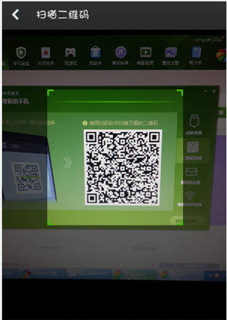 2、再點(diǎn)擊手右上角的三條橫線,再點(diǎn)掃一掃把手機(jī)移到電腦前的二維碼,這樣就連接上360手機(jī)助手了,手機(jī)上也提示連接成功