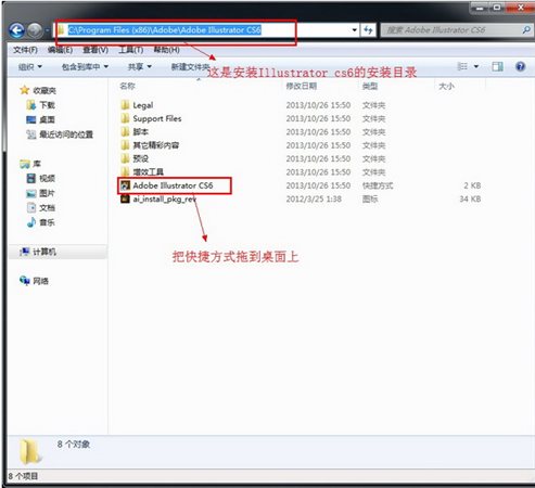 根據(jù)自己軟件的安裝路徑(安裝目錄)找到Adobe Illustrator Cs6【AI cs6】的快捷方式并把它拖到桌面上