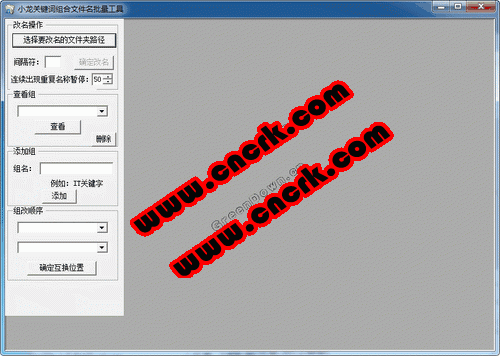 小龍關(guān)鍵詞組合文件名批量工具 文件批量改名,新文件名稱由預(yù)先設(shè)置每組分類關(guān)鍵字中隨機(jī)選擇一個組合而成。
