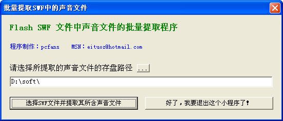 SWF音樂(lè)文件提取器 SWF文件提取器是一款可以從從SWF文件中提取資源的輔助軟件,比如你很喜歡一個(gè)flash動(dòng)畫(huà)中的一部分,但是你又無(wú)法制作出與它一樣的效果,那你可以使用本提取器來(lái)把它的資源提取一下,導(dǎo)入到你的flash制作中。